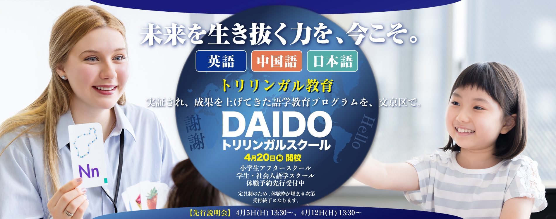 - 2026年3月25日 おしらせ DAIDOトリリンガルスクール 4月20日 開校!